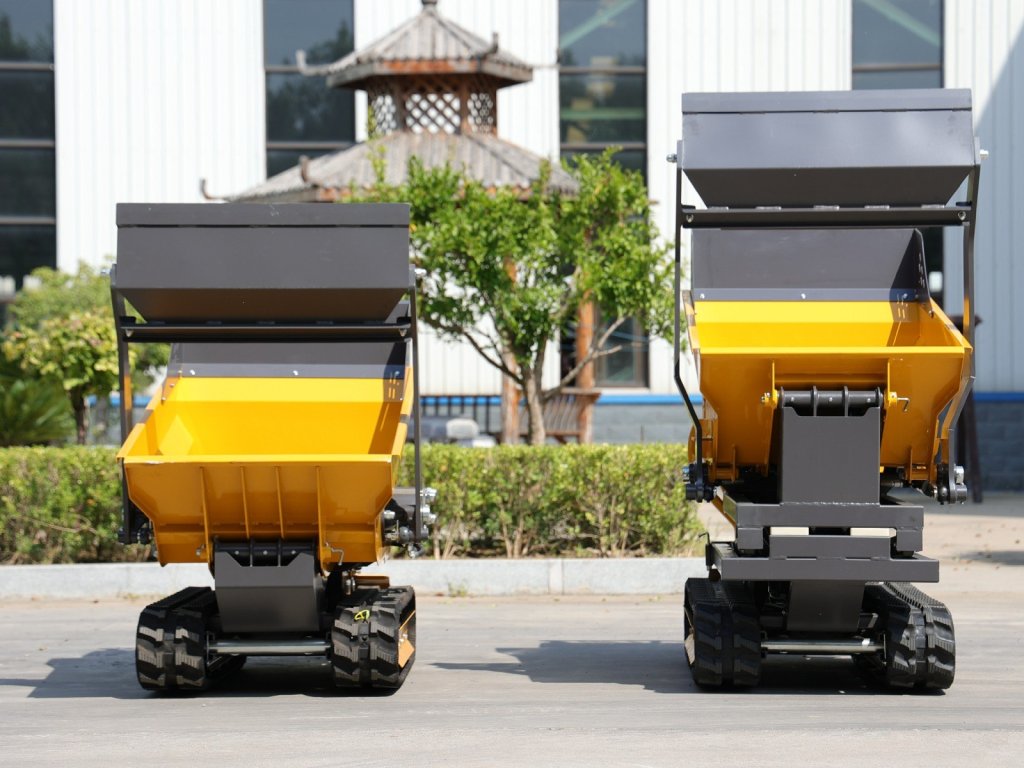 Mini pásový sklápač je sklápač vyrobený z gumového pásového podvozku, vhodný na prepravu na krátke vzdialenosti v zložitom teréne, ako sú sklady stavebných materiálov, farmy, staveniská atď.