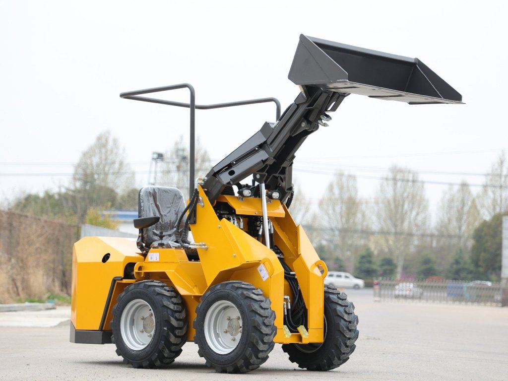 Šmykom riadený nakladač . Ide o kolesové špeciálne podvozkové zariadenie, ktoré využíva rozdiel v lineárnej rýchlosti kolies na oboch stranách na riadenie vozidla. Má vlastnosti flexibilného riadenia, kompaktnej karosérie a môže byť vybavené multifunkčným náradím.