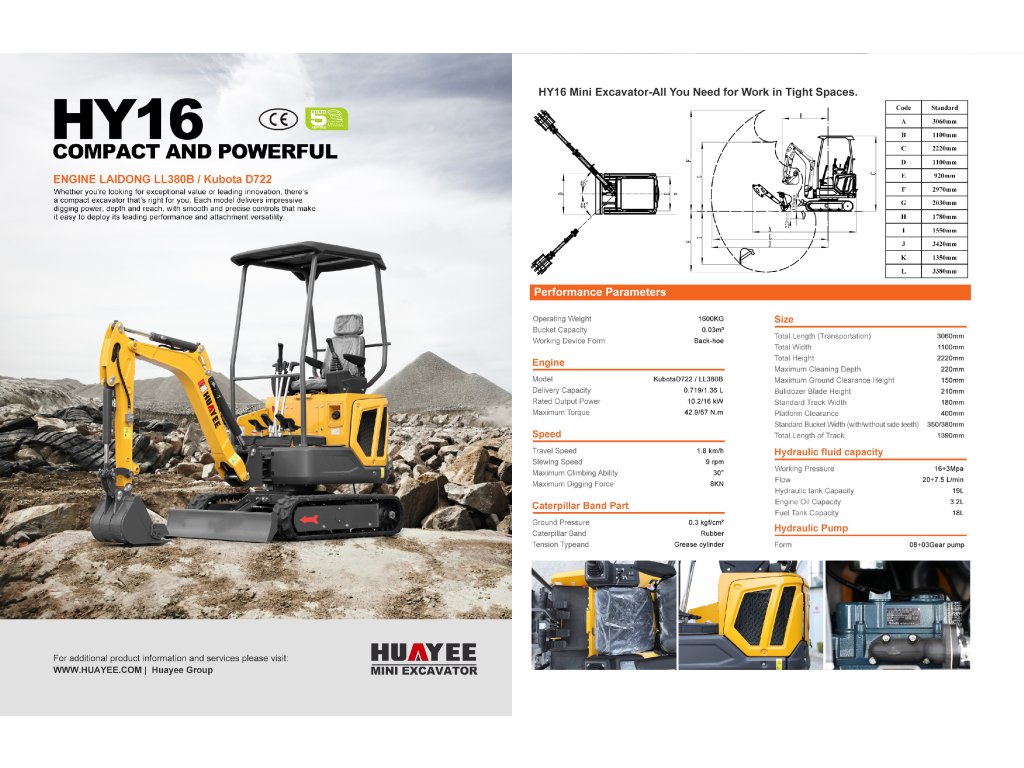 HY16 je model minirýpadla, vhodný na prácu vo vonkajšom prostredí, na rôzne úpravy pozemkov, záhrad a pod.