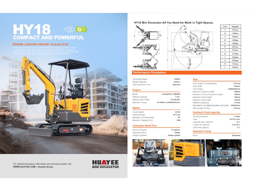 HY18 je model minirýpadla, vhodný na prácu vo vonkajšom prostredí, na rôzne úpravy pozemkov, záhrad a pod.